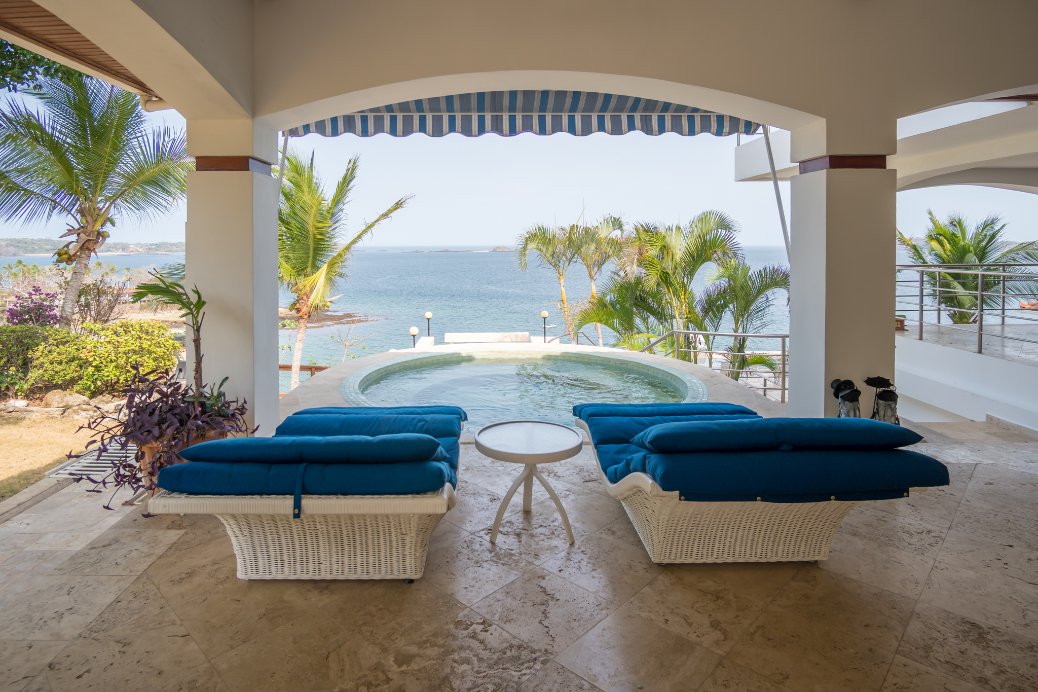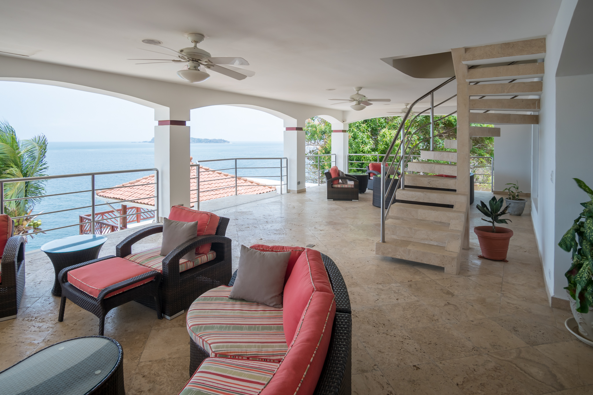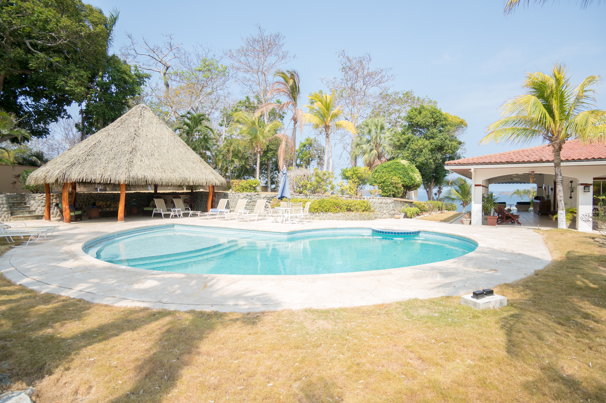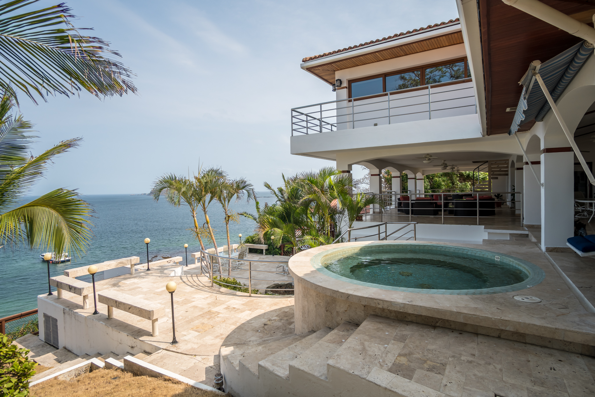 Two master bedrooms with large bathrooms and plenty of storage. Oversized fresh water lagoon pool with a swim up bar. Built-in sun shelf for lounging. Large pool cabana bath. Every additional bedroom has a private bath. Office or additional bedroom plus another smaller office. Separate employee house. Large garage with loft storage. Deep water well supplies desalination plant which provides ample, fresh water for all needs of the estate. 3 cisterns totaling over 50,000 gallons hold rain water for irrigation and exterior cleaning needs. Jacuzzi overlooking Pacific Ocean. Beautifully landscaped tropical gardens with fruit trees. Two outdoor gazebos with bars and adjoining bathrooms. This luxury 699m2 (7,523.98 ft2) mansion is located on one of Isla Contadora’s largest, most sought after, ocean front properties. The entire estate measures 4,628m2 (1.14 acres) and is perched over the popular Playa Galeon. La Perla offers the most dramatic beach, ocean, island, whale, sunset and city views on the island. This gated and completely fenced estate is immaculate and offers every amenity possible. The property is beautifully landscaped and includes a massive jacuzzi and large, lagoon style pool. Casa La Perla has 5 bedrooms, 5.5 baths, chef’s kitchen and plenty of storage. It’s the perfect home to entertain with 2 large living areas, walk-in pantry, custom kitchen, outdoor dining, 2 gazebos with bars, 2 outdoor lounge areas and numerous terraces. This intelligent home is fully equipped with music system zoned throughout the property, controlled by Smartphone, camera system throughout the estate and numerous other details. The property has a separate caretaker’s residence, 3 car garage and workshop. The property also includes its own well and water purification system. $3,900,000 Separately zoned music system throughout the property.