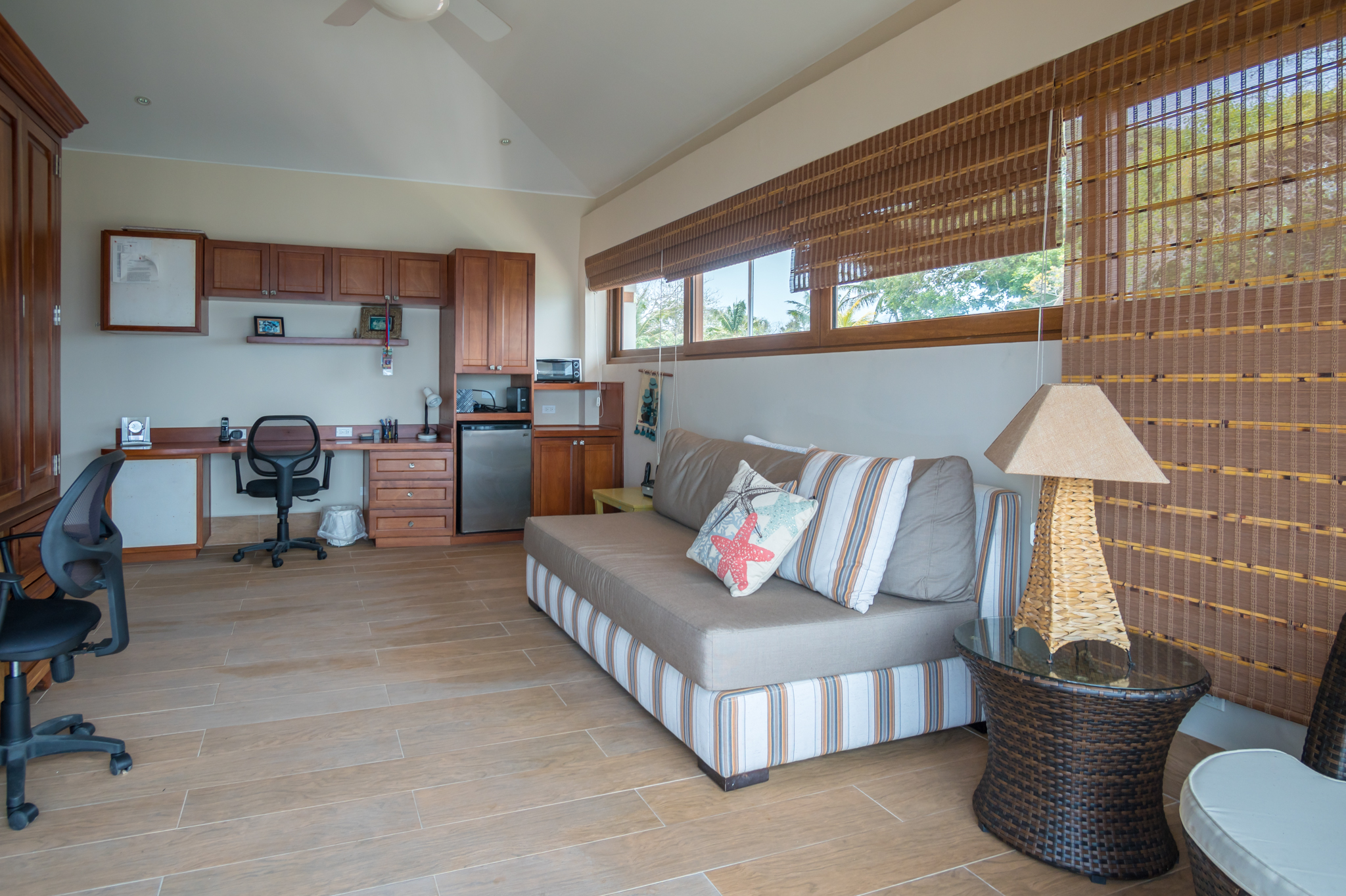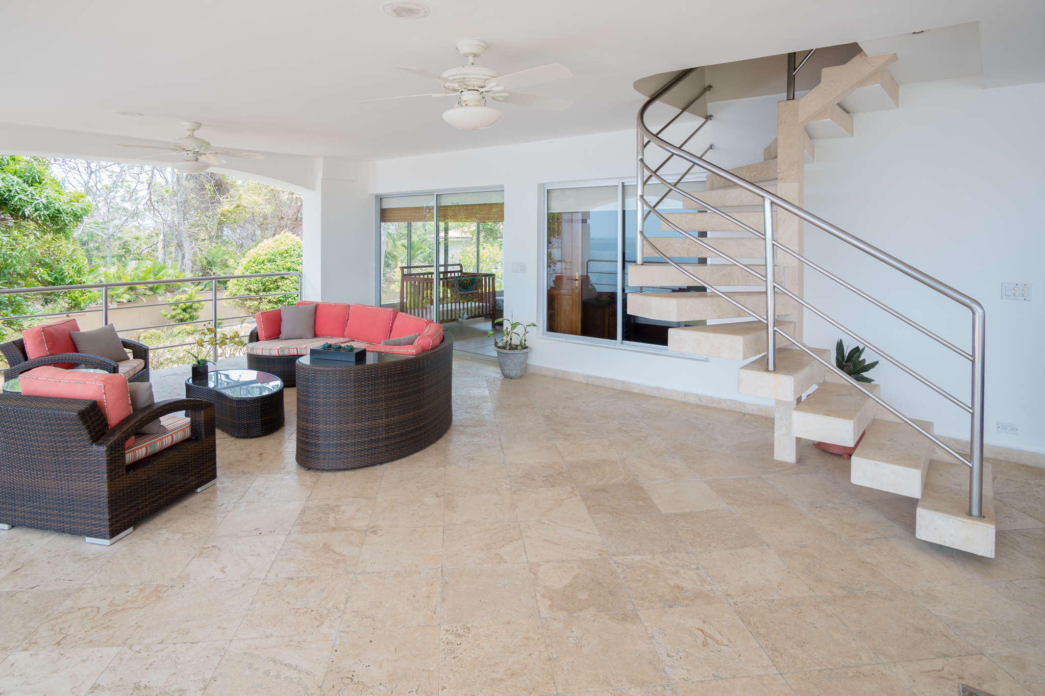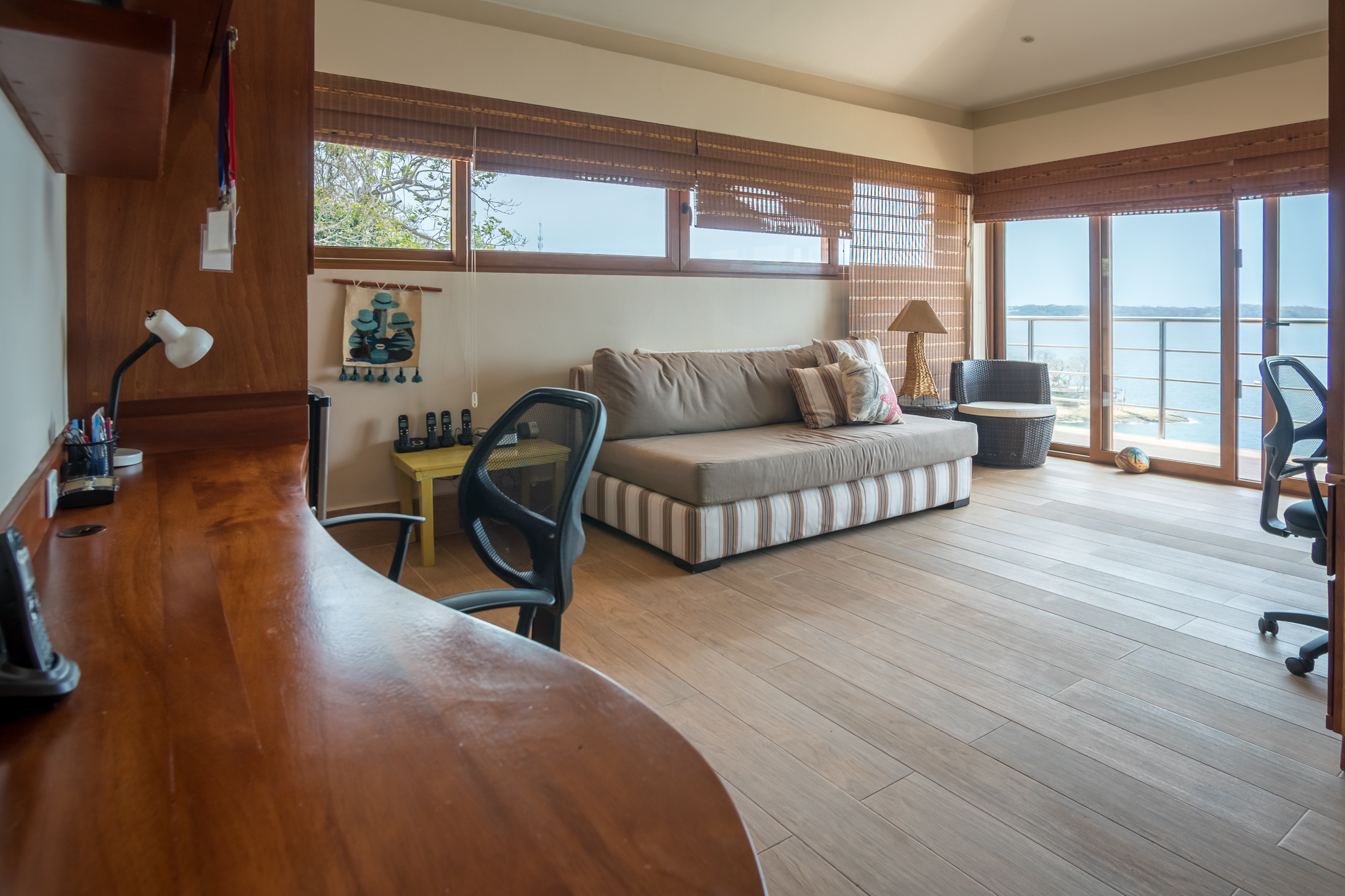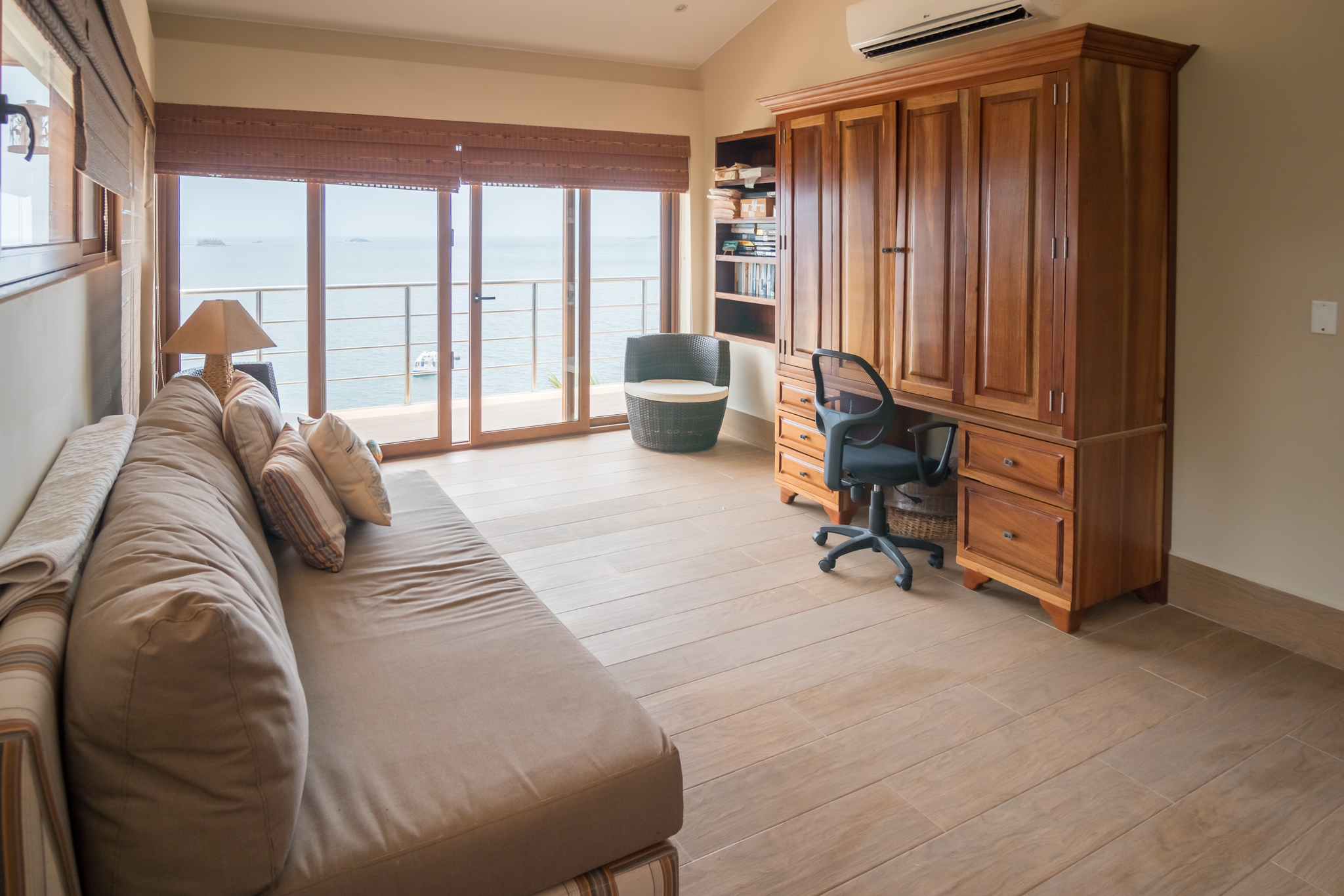 Two master bedrooms with large bathrooms and plenty of storage. Oversized fresh water lagoon pool with a swim up bar. Built-in sun shelf for lounging. Large pool cabana bath. Every additional bedroom has a private bath. Office or additional bedroom plus another smaller office. Separate employee house. Large garage with loft storage. Deep water well supplies desalination plant which provides ample, fresh water for all needs of the estate. 3 cisterns totaling over 50,000 gallons hold rain water for irrigation and exterior cleaning needs. Jacuzzi overlooking Pacific Ocean. Beautifully landscaped tropical gardens with fruit trees. Two outdoor gazebos with bars and adjoining bathrooms. This luxury 699m2 (7,523.98 ft2) mansion is located on one of Isla Contadora’s largest, most sought after, ocean front properties. The entire estate measures 4,628m2 (1.14 acres) and is perched over the popular Playa Galeon. La Perla offers the most dramatic beach, ocean, island, whale, sunset and city views on the island. This gated and completely fenced estate is immaculate and offers every amenity possible. The property is beautifully landscaped and includes a massive jacuzzi and large, lagoon style pool. Casa La Perla has 5 bedrooms, 5.5 baths, chef’s kitchen and plenty of storage. It’s the perfect home to entertain with 2 large living areas, walk-in pantry, custom kitchen, outdoor dining, 2 gazebos with bars, 2 outdoor lounge areas and numerous terraces. This intelligent home is fully equipped with music system zoned throughout the property, controlled by Smartphone, camera system throughout the estate and numerous other details. The property has a separate caretaker’s residence, 3 car garage and workshop. The property also includes its own well and water purification system. $3,900,000 Separately zoned music system throughout the property.